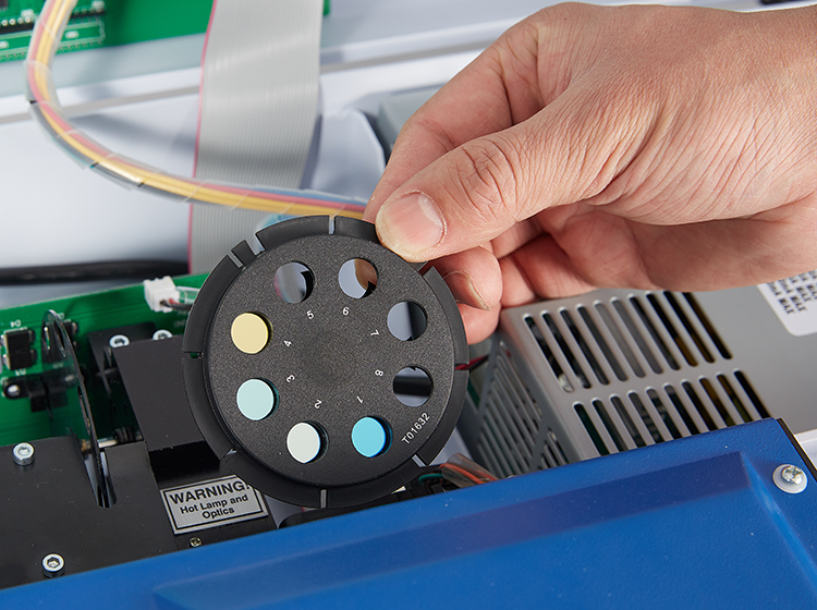 濾光片將復合光濾過(guò)成能通過(guò)特定波長(cháng)的單色光,用于之后樣品的濃度判定;