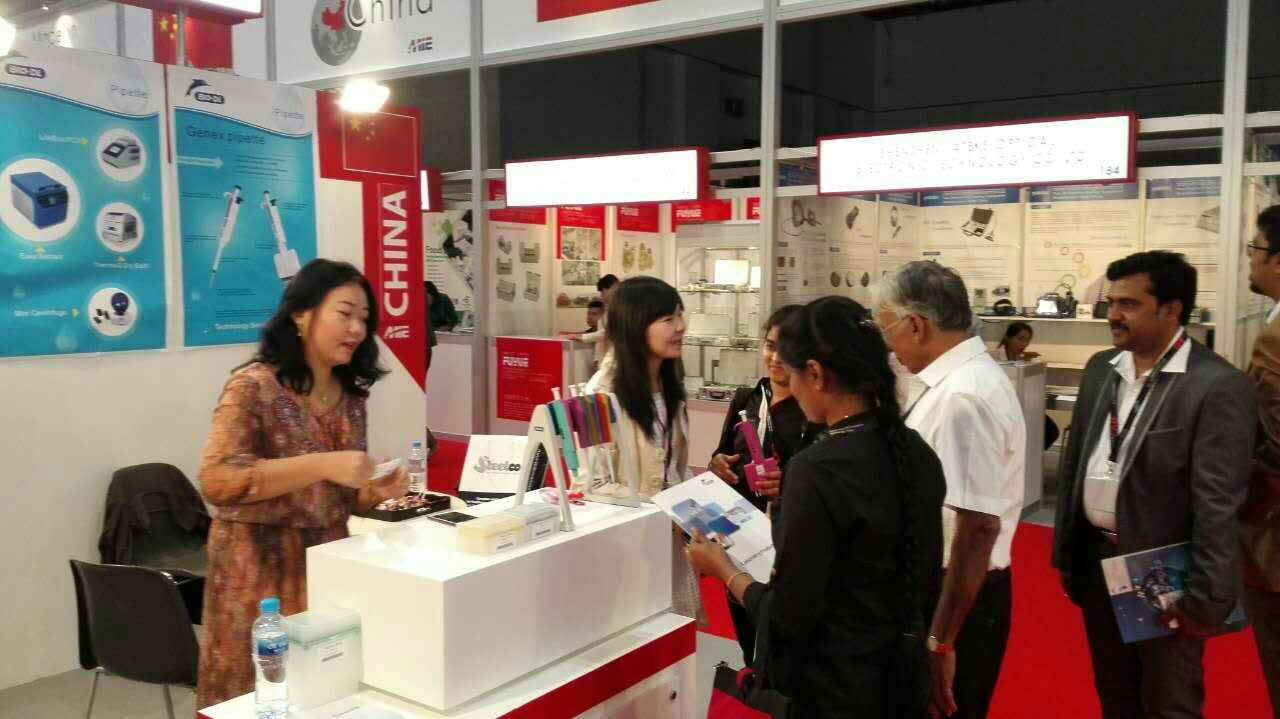 靚麗,帥氣的海外代表們在A(yíng)38號展位熱情大方向中東客戶(hù)們介紹BIO-DL】寶予德Colour移液器。