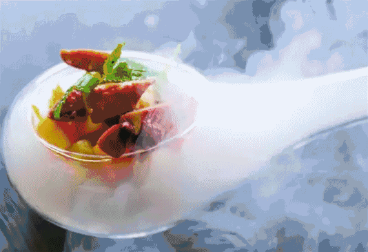 “分子料理就是將食物的味道以分子為單位進(jìn)行處理和呈現,打破食材原貌重新搭配和塑形,創(chuàng )造出與眾不同的食用體驗…”這個(gè)定義聽(tīng)起來(lái)是不是一臉懵逼,看不懂沒(méi)關(guān)系,我來(lái)舉個(gè)栗子吧。