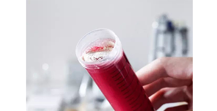 用多道移液器吸取西瓜汁,打入氯化鈣溶液中,靜置1min。
