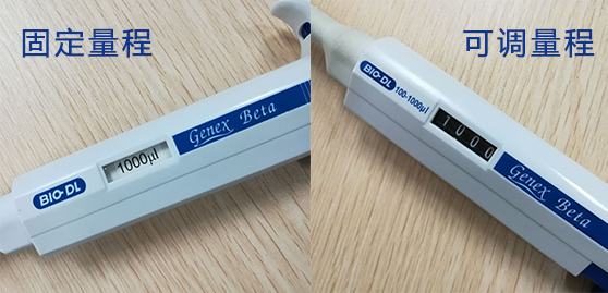 再后來(lái)出現了一種量程可以調節的移液,但是可選的量程比較少,確實(shí)比之前的方便多了。但是,這類(lèi)的畢竟量程選擇有限,同樣也逐漸out了,我們把這類(lèi)移液器也歸為固定量程移液器。