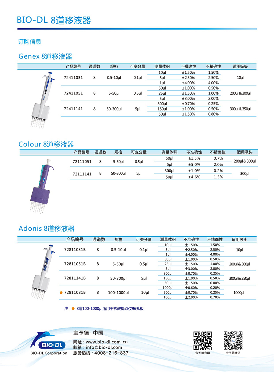 Adnios 100-1000μl 8道核酸提取專(zhuān)用移液器