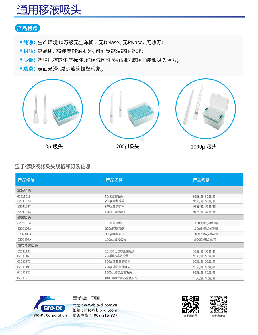 BIO-DL為您提供精確的移液器吸頭,與大多數其他品牌移液器一起使用,都具有更好的可重復性和準確度。